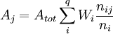 Wi – отношение суммарной площади i-ой категории, к общей площади карты, т.е.: