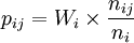 где nij – значение в соответствующей ячейки матрицы с координатами i, j (табл. 1);